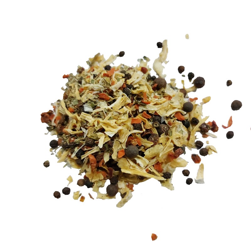 Приправа Овощная - это смесь специй, овощей и пряностей специально подобранных на основе традиционных вкусов продуктов.